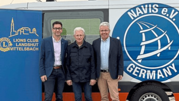 (red) Der LIONS CLUB Landshut-Wittelsbach hat dem Moosburger Verein Navis eine Spende in Höhe von 2.450 Euro überreicht. Damit unterstützt der Club die vielfältige humanitäre Arbeit des Vereins, der seit Jahren weltweit in Krisen- und Katastrophengebieten tätig ist. Navis ist auf technische und medizinische Katastrophenhilfe spezialisiert.