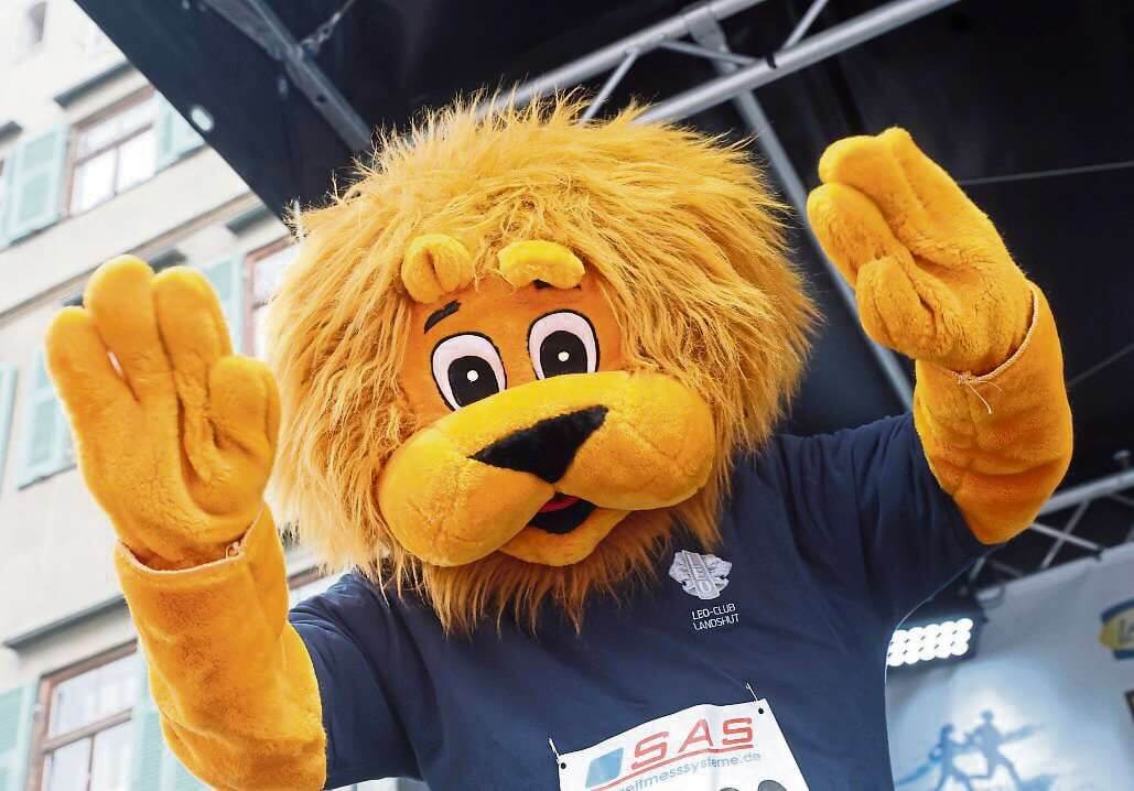 Maskottchen „Leo“ feuerte die Läufer beim Zieleinlauf kräftig an. -